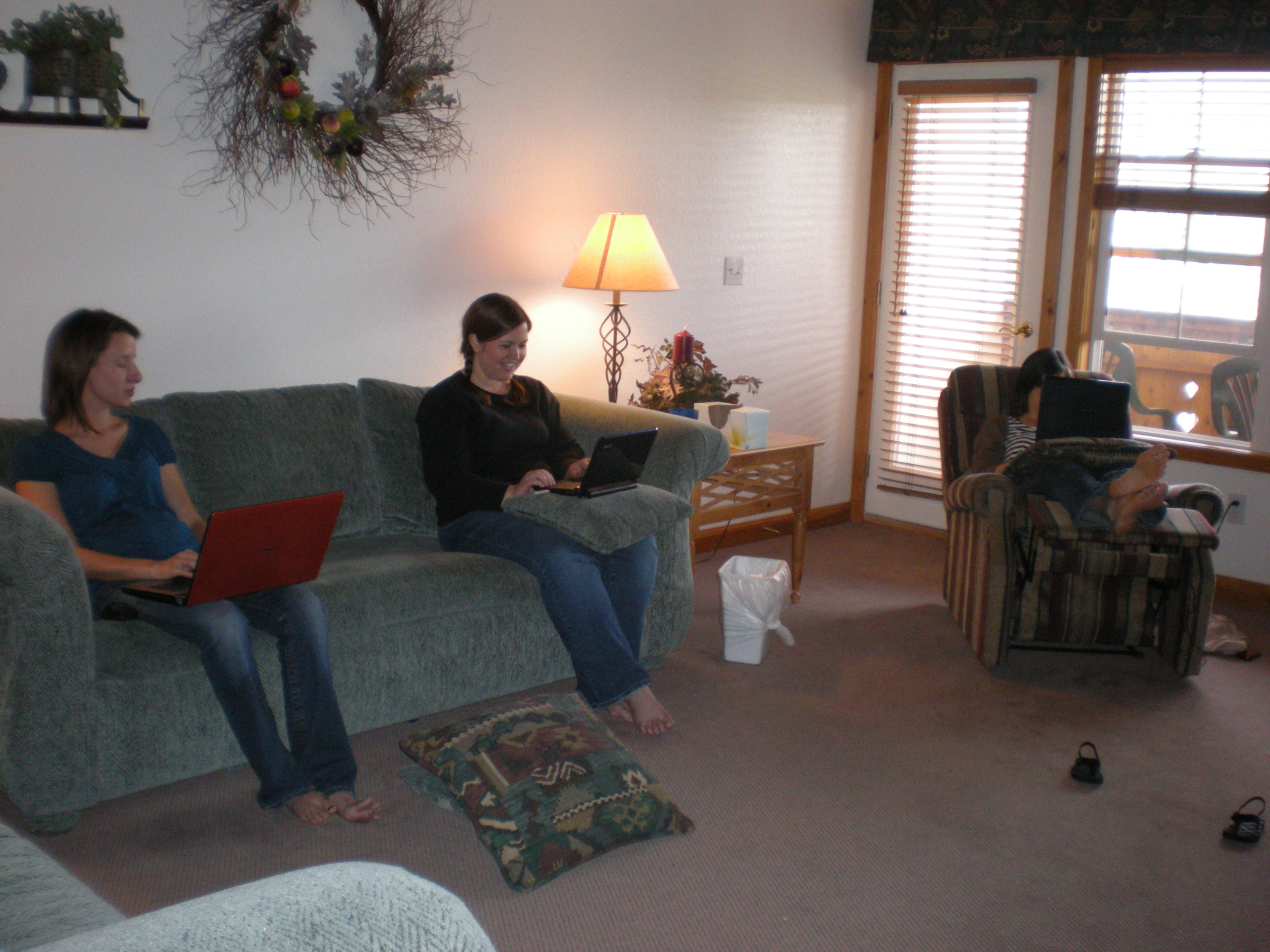 So this past weekend, I holed up in a condo with 10+ other writers, and what a blast! We had three days to ourselves just to write. So what does a writer’s retreat look like?? See the picture below, add 10 more writers and a 3 story condo into the mix, and you have somewhat of an idea.