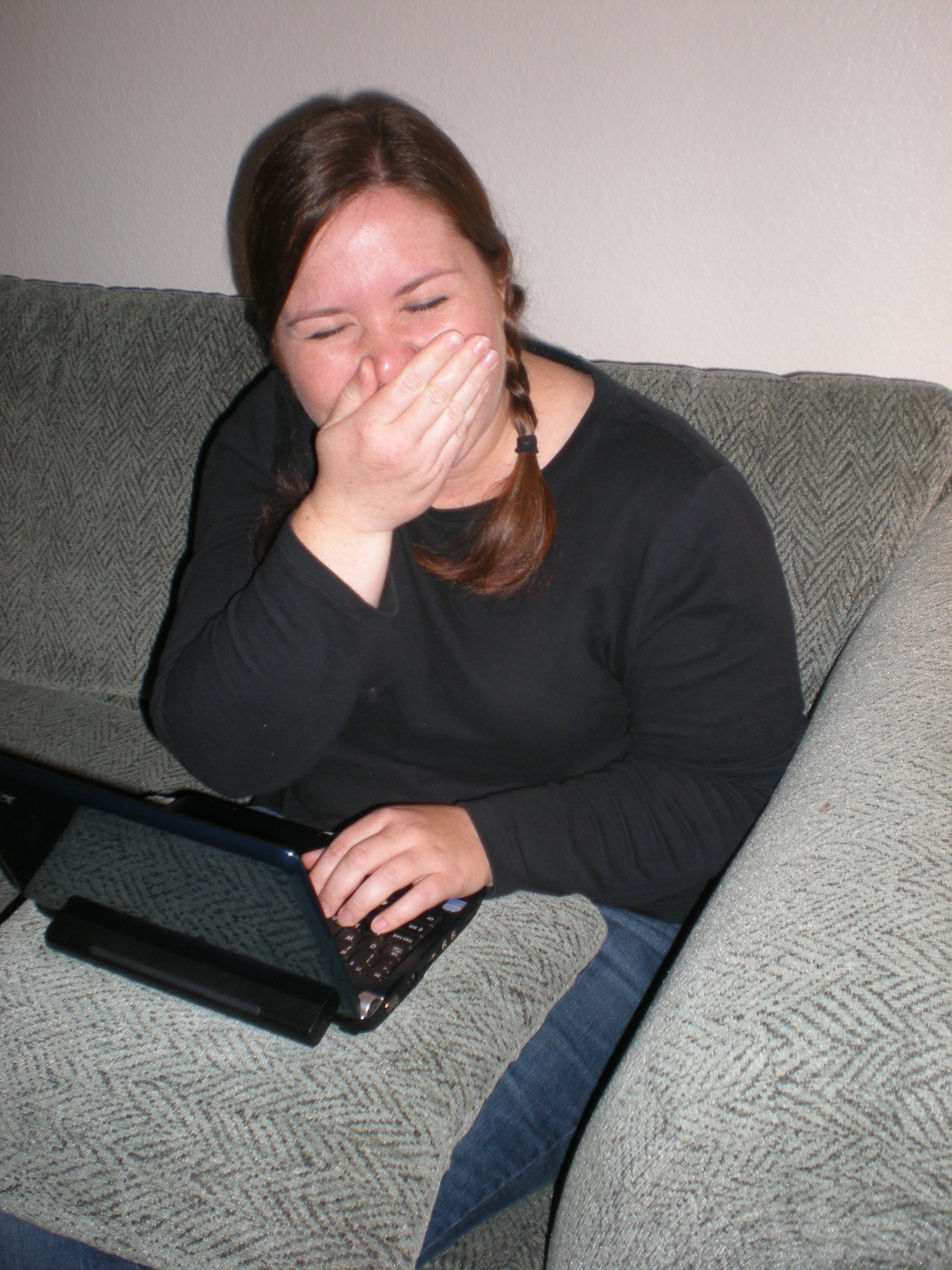 I wasn’t laughing at my story! I was trying to demonstrate a kissing face since we had suggested that kissing was the cure to problems in the last chapter. And then I started laughing.