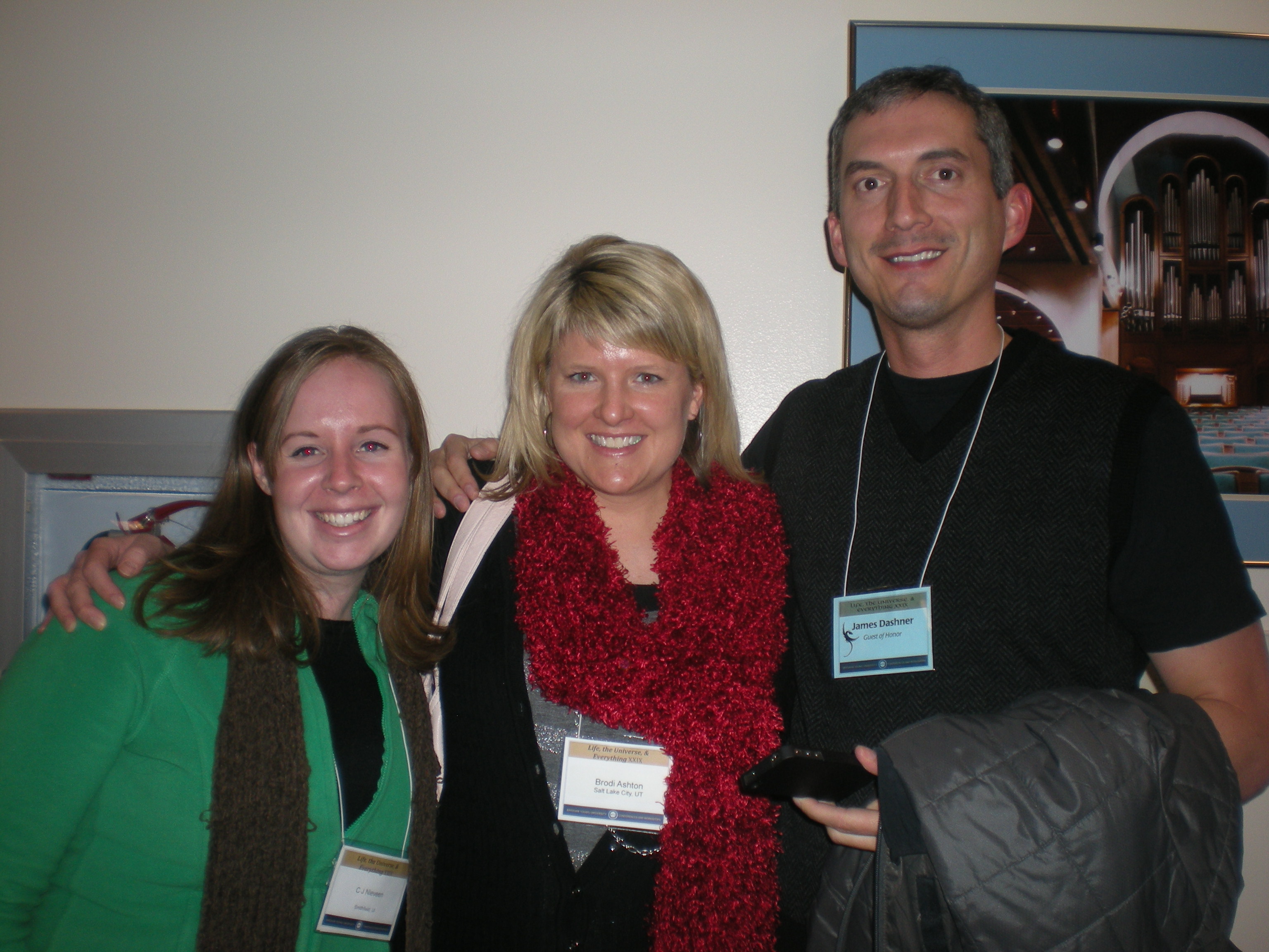 So apparently red scarves create instant popularity. At least, it does if you wear it to LTUE like Brodi and Elana Johnson (apparently I missed that memo, because my scarf was brown. Note to self: buy a red scarf and wear it to the next writing conference. Unless the color for that conference is purple or yellow…).