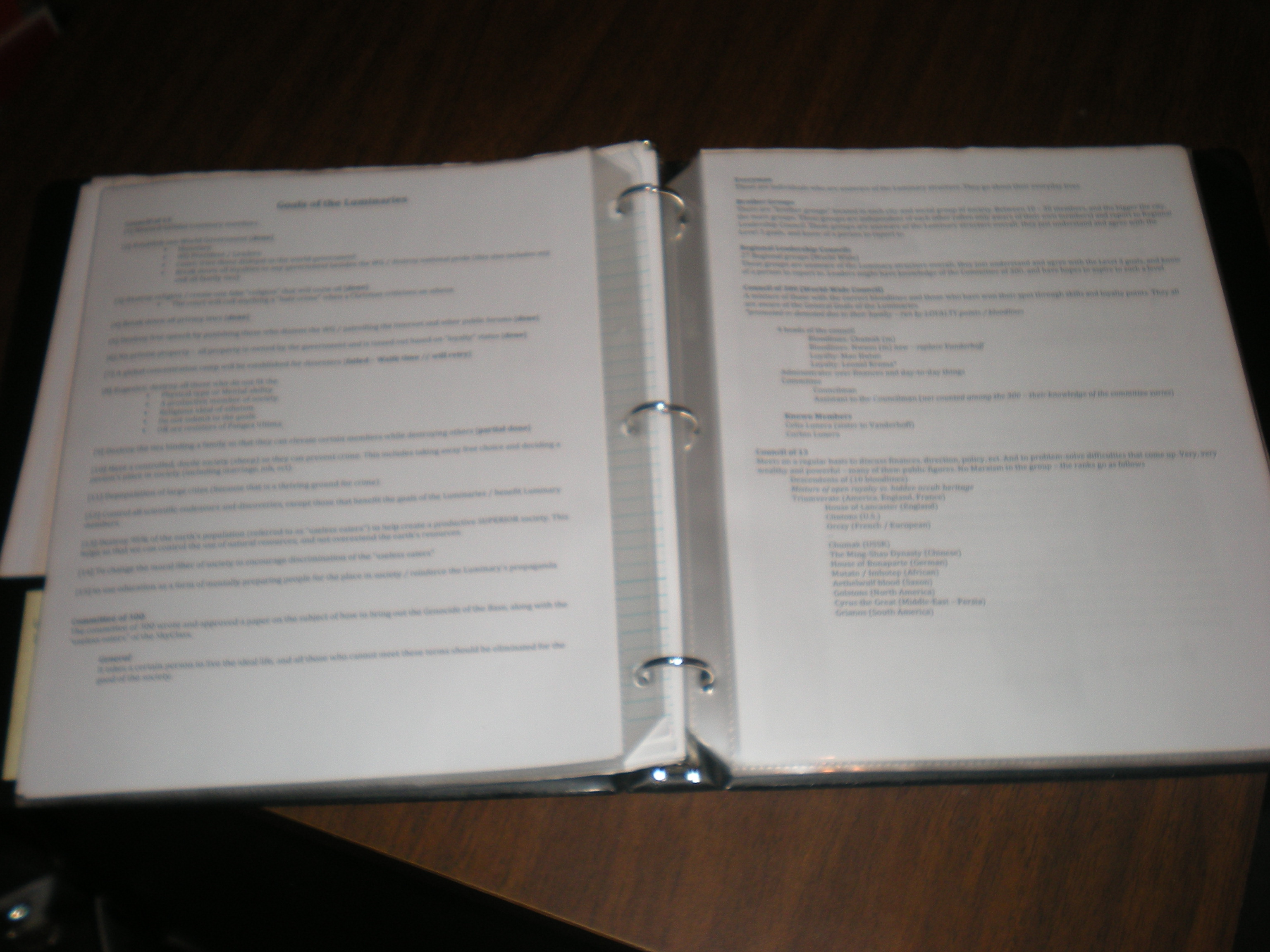 I print off any research that is super important and put it in the binder. That way I can refer to it over and over again. I do a lot of research for my stories so I can build a credible society. Research on building designs, furniture, food, personality types, ect.